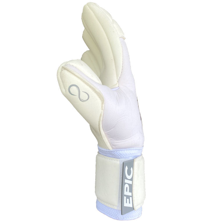 The INFINITY is a cross breed of our signature GLUE & TOUCH Series gloves, much like the MAMBA, but this glove features an All White look instead. We did place EPIC Braille-the interior grip bars inside the glove for extra feel and grasp of the ball. We have included the option of Removable Spines so anyone can enjoy this glove wether you are a fan of the finger-savers or not. Latex wrapped finger tips and a strong secure wrist strap layered in our soft Spanish breathoprene backhand to finish this unique EPIC glove.
