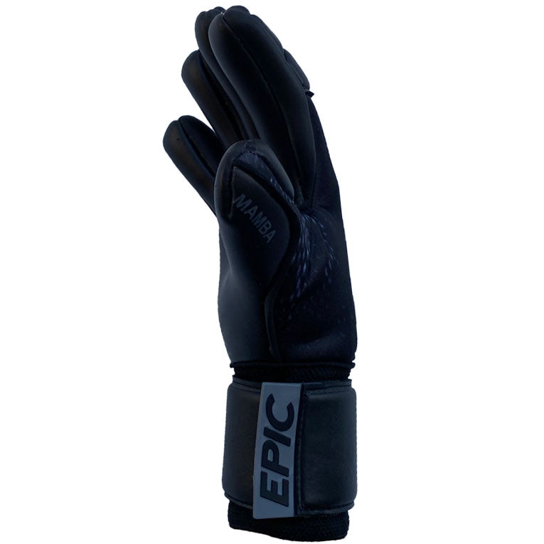 The MAMBA is a cross breed of our signature GLUE & TOUCH Series gloves. This glove features a Blacked out look, wrist cuff like the GLUE, over the extended TOUCH series' longer wrist. We did place EPIC Braille, the interior grip bars, inside the glove for extra feel and grasp of the ball. We have included the option of Removable Spines so anyone can enjoy this glove, wether you are a fan of the finger-savers or not. Latex wrapped finger tips and a strong secure wrist strap layered in our Contact Latex to finish this unique EPIC glove.